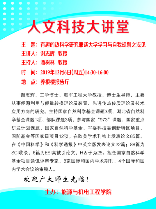 [主讲:谢志辉]人文科技大讲坛的通知