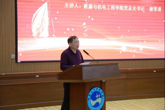 5月21日,能源与机电工程学院在匠成楼报告厅举行2021届毕业生党史教育暨毕业生离校、就业讲座。校党委副书记李军林出席, 学院党总支书记谢常清、院长胡东、党总支副书记石海、副院长张海筹、副院长伍铁斌及各教研室主任、 党支部书记、班主任、全体辅导员、全体17级毕业生和学生干部参加。