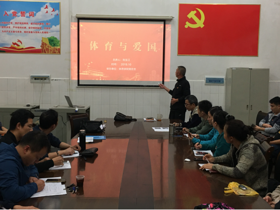2019年10月23日晚上,体育学院院长刘玉江教授以《体育与爱国》为题,在体育馆会议室为体育学院全体师生党员上“不忘初心、牢记使命”主题教育专题党课。