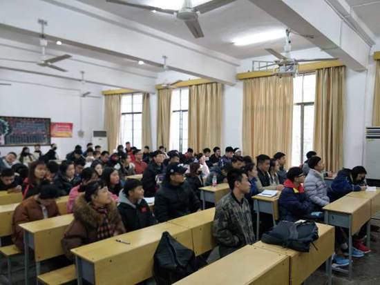 我院学生在博达楼314观看庆祝改革开放40周年大会直播报道现场