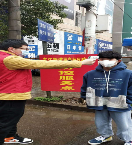 李勇:19级运动训练专业1901班学生,服务于湖南省衡阳市车江镇福泉社区疫情防控服务点。在为期三天的自愿服务活动期间,其主要工作是对外来车辆进行登记以及人员体温测量,对未戴口罩人员进行提醒。他说:“通过这几天的志愿者工作,我更加明白了国家的繁荣富强以及人民的团结的重要性,我很荣幸能够加入到此次的疫情志愿者的工作中来”。