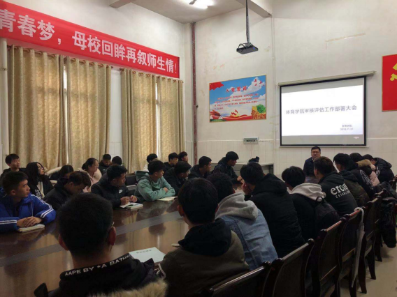 为了进一步推进本科教学审核评估工作,加强学生安全意识,11月27日中午,体育学院审核评估工作部署会议在体育馆会议室召开,会议对学院具有机动车驾驶证的学员强调安全驾驶的重要性,酒后驾车的危险性和严重性,同时,对学生在审核评估中的具体行为作了规范指示。会议由体育学院党总支副书记谢嘉主持,全体辅导员及拥有机动车驾驶证学员、主要学生会干部参加会议。