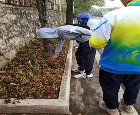 义务劳动中,老师们亲力亲为地为同学们示范了怎样清理落叶和杂草,老师和同学们之间配合默契。有的用手拔草、有的用铁锹铲,还有的用扫帚清扫落叶。大家尽情挥洒汗水,体会集体劳动带来的乐趣