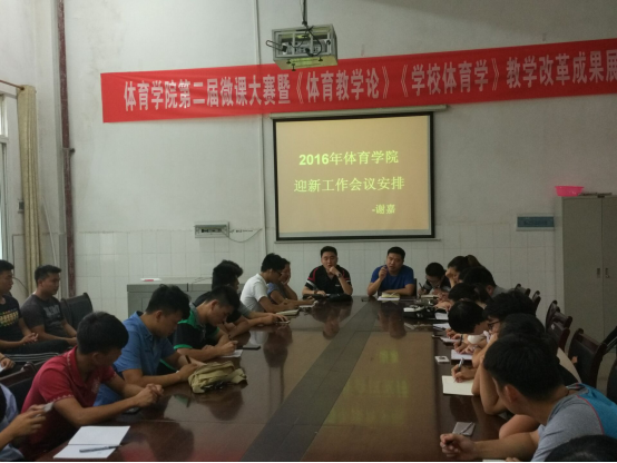 2016年9月6日下午四点半体育学院在体育馆会议室召开2016年迎新工作会议,本次会议由谢嘉副书记主持,辅导员老师,16级新生班主任、代班,学生会以及团总支的干部参加本次会议。