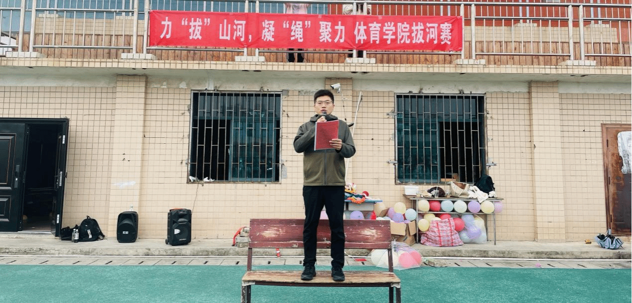 赛前,体育学院党总支副书记肖毅发表动员讲话。他强调,团队协作是成功的基石,也是体育学院精神风貌的重要体现,更是每一位同学在成长道路上不可或缺的品质,他希望同学们通过这次拔河比赛,深刻领悟团队力量的强大,将这种精神融入到日常的学习和生活中,不断督促自己成长。