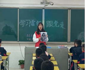 (我院青工部王瑞君同学正在给小朋友们讲雷锋精神)