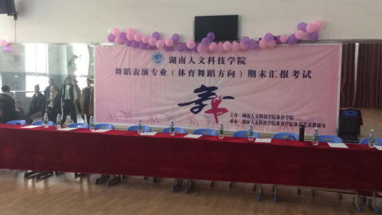 为了深化教育教学改革,积极探索人才培养的新模式与途径,大胆改革特定专业的课程考试模式,有效的检验和反馈教学效果,充分调动师生教与学的主动性和积极性,进一步提升专业教学技能,为培养高素质的应用型人才奠定基础,体育学院于2016年12月29日在体育馆舞蹈房举行了2016—2017学年第一学期期末汇报演出。体育学院副院长曾黎观看演出,依次进行了形体、芭蕾基训和体育舞蹈课程的汇报展演,体育学院专业教师李群跃、彭玉宇、谢仁桃、宁耐桥、葛柳、董植寿、余思瑶担任评委。