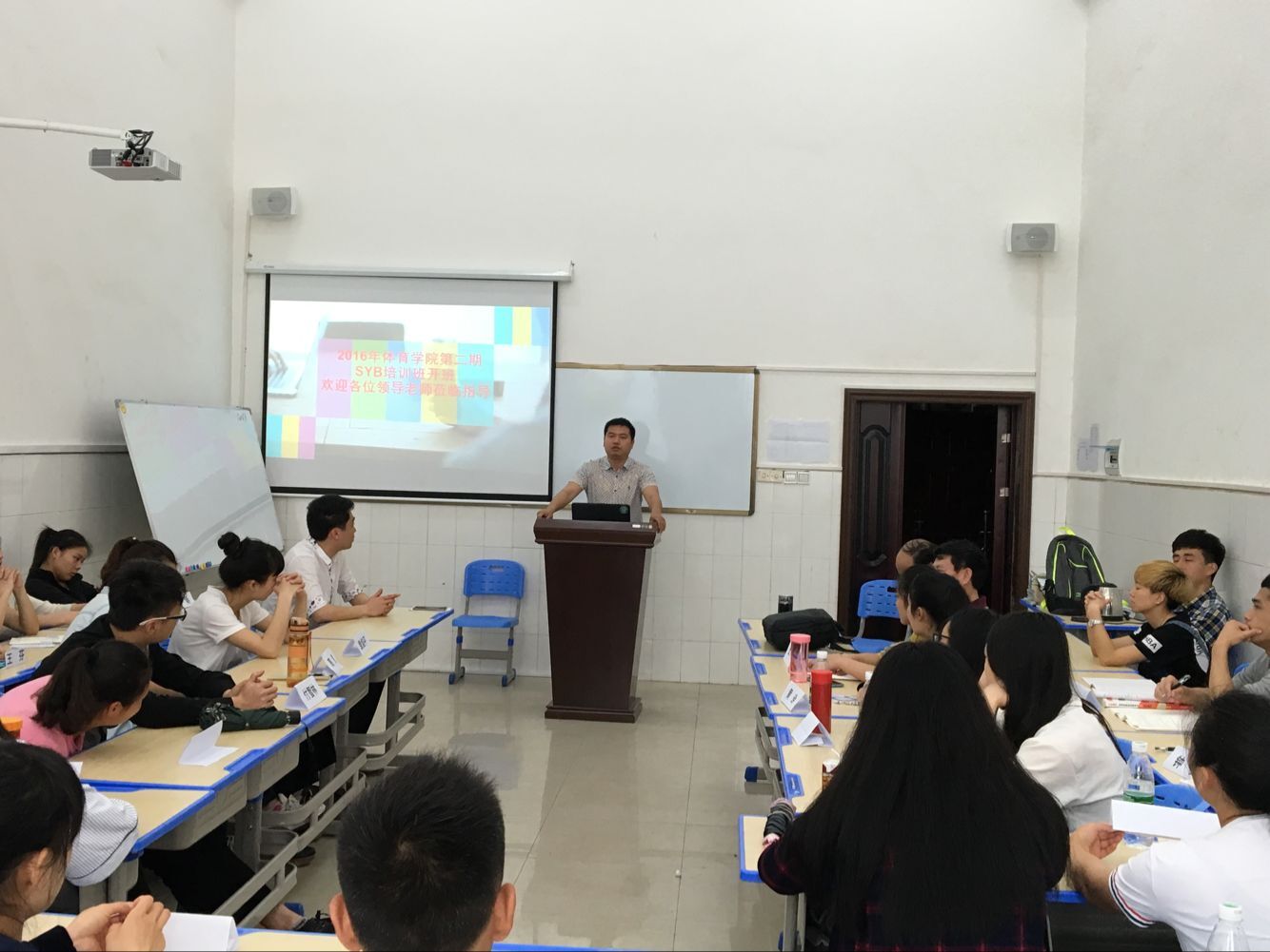2016年体育学院第二期SYB创业培训班开班仪式于5月5日上午8::30在体育馆306教室举行,参加开班仪式的领导老师有:招生就业中心刘盛愚主任、体育学院蒋毅书记、谢嘉副书记、能机学院谭书记以及班主任杨鑫老师。仪式上,领导老师们一一发言、对我院学生创业给予了很大的期望和鼓励,在此感谢所有的领导老师对我院的大力支持!