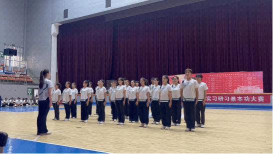 本次大赛由体育学院主办,旨在全面提升学生的专业素养和实践能力,以适应体育教育和体育产业的发展需求。大赛内容包括队列队形,广播体操,梅山武术三个项目。在队列队形环节中,舞蹈表演专业学生气势高昂、步调一致、动作标准娴熟、舒展自然、英姿飒爽,展现出了21级体舞班的学生扎实基本功和严肃活泼、团结一心的精神面貌。赢得观看师生的阵阵掌声。在广播体操环节中,舞蹈表演专业学生准备充分,每一个细微的动作,都经过无数次的打磨与调整,力求精准无误,每一次排练都凝聚着团队的智慧与汗水。在梅山武术环节中,舞蹈表演专业学生步伐坚定,矫健生风,他们虎虎生威、一展身手,昂首或下蹲,旋转或跳跃,以一招一式、展现出21级体舞班的亮丽风采,也展示着梅山武术的精深玄妙,更演绎出武术文化的华彩乐章。