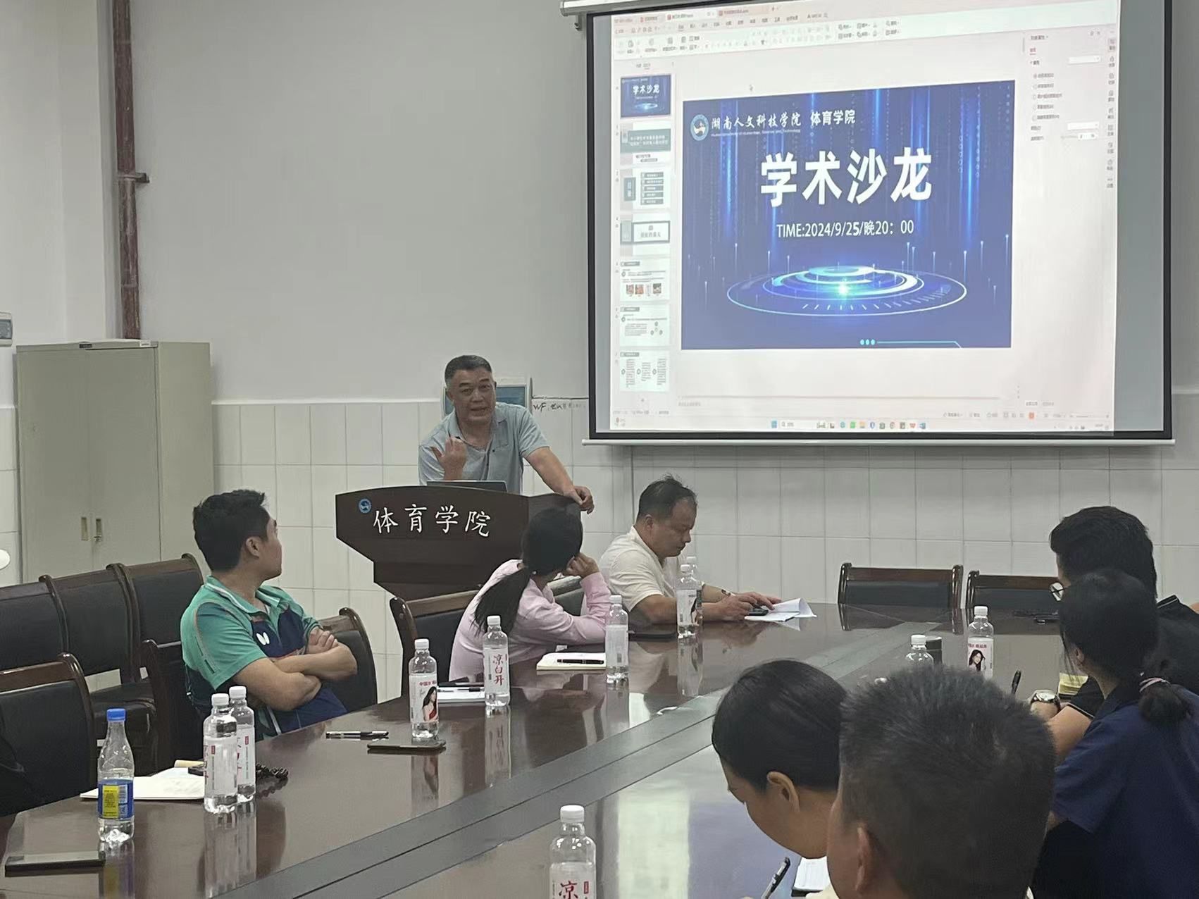 为进一步提升学院科研创新能力与学术交流氛围,体育学院于9月25日晚8点,在体育馆105会议室隆重举办了一场学术沙龙活动。学术沙龙由学院副院长董植寿主持,戴江洪博士和杨志华博士作为本次沙龙的报告人,特邀彭健民教授和周惠新教授作为评议人,吸引了学院全体博士积极参与。