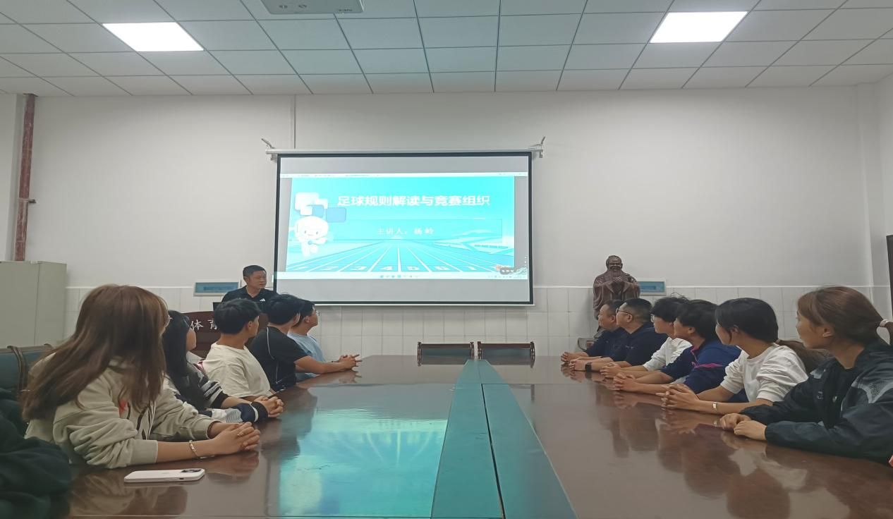 2024年6月28日晚,体育学院体育馆会议3室举办了一场专题讲座,由足球教师杨岭博士主讲,题为《足球规则解读与竞赛组织》。此次讲座由陈勤博士主持,吸引了学院部分老师及全体足球专项学生的积极参与。