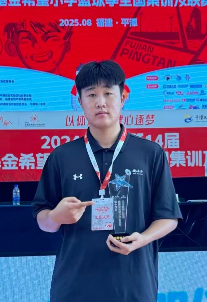 作为支教志愿者,他累计服务2880小时,充分发挥专业优势,设计趣味与教育性兼具的体育课程,激发学生运动兴趣;同时主动与当地教师交流经验,助力提升当地体育教育水平,凭借突出表现荣获“姚基金全国优秀教练员”“姚基金全国志愿之星”称号。