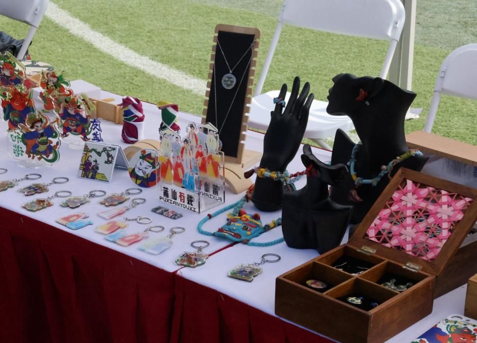 “非遗传承”展示了美术与设计学院师生共同创作具有苗族、瑶族、汉族特色的非遗文创作品,包括棕编系列、莆仙戏剧系列、梅傩百相系列、滩头年画系列等形式多样、内涵丰富