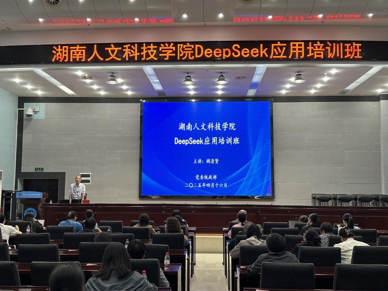 为提升党外知识分子数智化素养,推动人工智能技术在教学、科研及社会服务中的创新应用,4月16日下午统战部在图书馆二报告厅举办“DeepSeek”应用培训班,信息学院公共计算机教研室主任阙清贤副教授担任主讲,120余名党外知识分子参培。