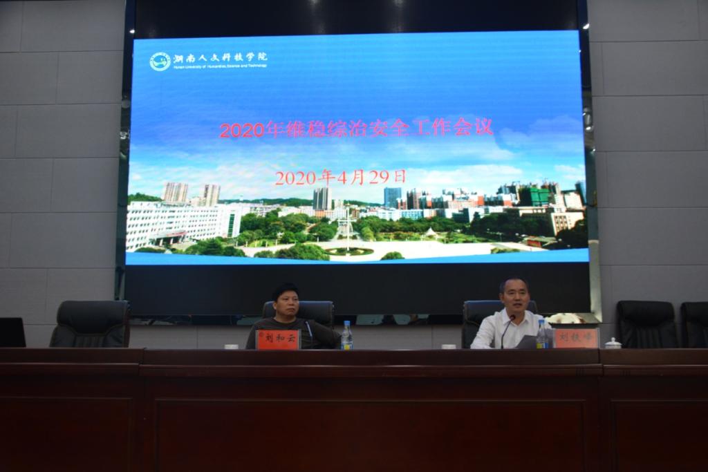 4月29日上午,beat365在图书馆二会议室召开了2020年维稳综治安全工作会议,全体校领导、各部门党政负责人参加,校长刘和云主持会议。