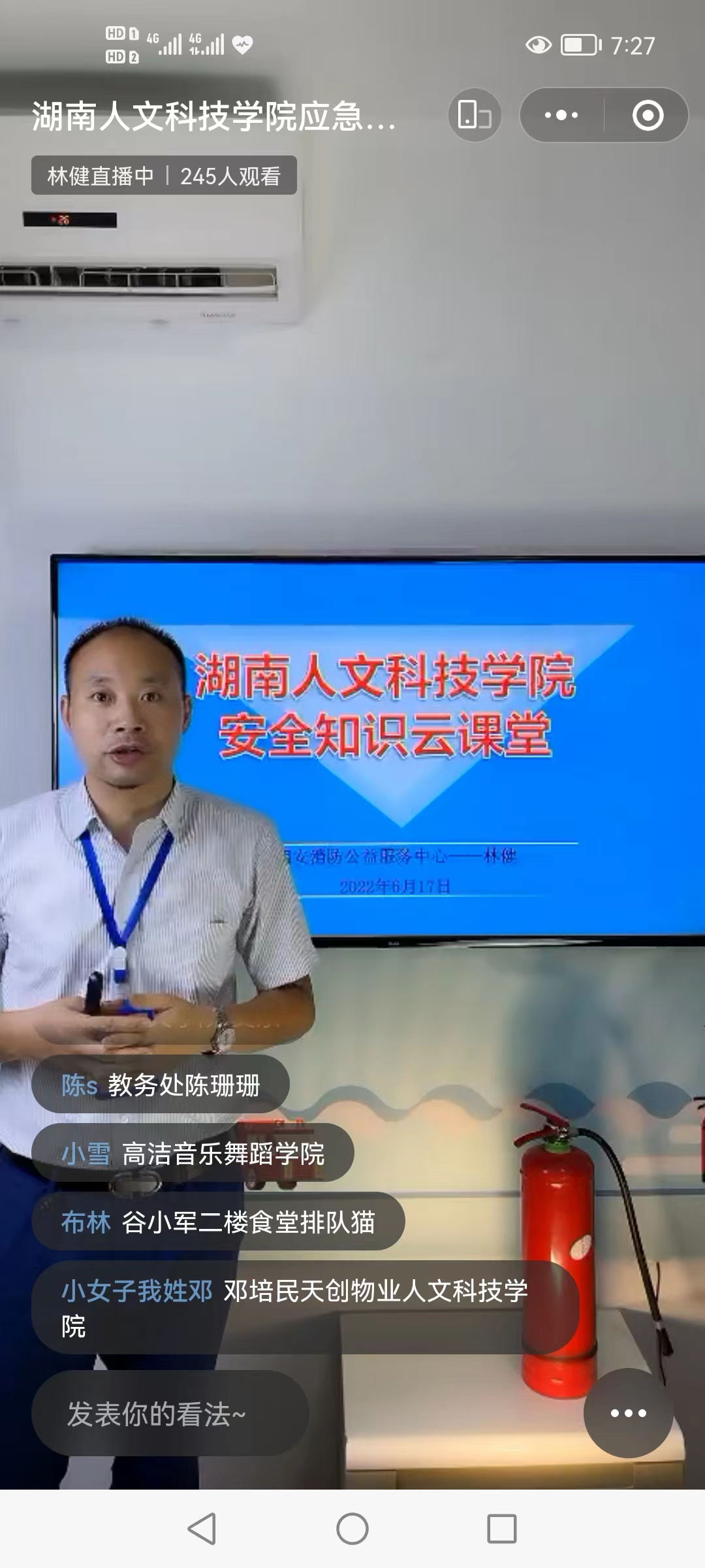 为做好“安全生产月”工作,深入推进安全生产专项整治三年行动,进一步加强安全宣传教育,6月17日beat365邀请湘安消防公益服务中心,开展消防应急安全知识云课堂线上直播培训。