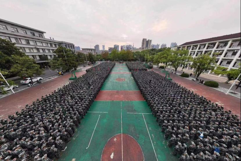 军训团政委陈刚带领师生回顾了沉痛的民族历史,告诫师生居安思危,警钟长鸣。他以“三要”为核心,鼓励师生要坚定不移跟党走,凝聚起民族复兴的磅礴力量;也要以史为鉴,面向未来;更要担当尽职,书写中国青年最靓丽的底色。
