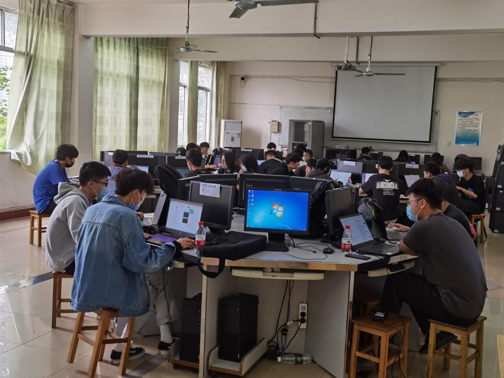 比赛开始后,彭智朝院长莅临现场指导,巡视了6个赛场,并就赛事开展工作与现场监考教师李曾妍、彭剑进行了交流。