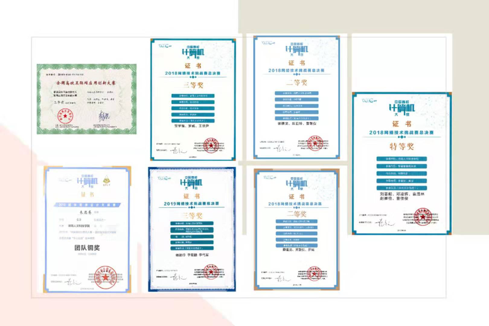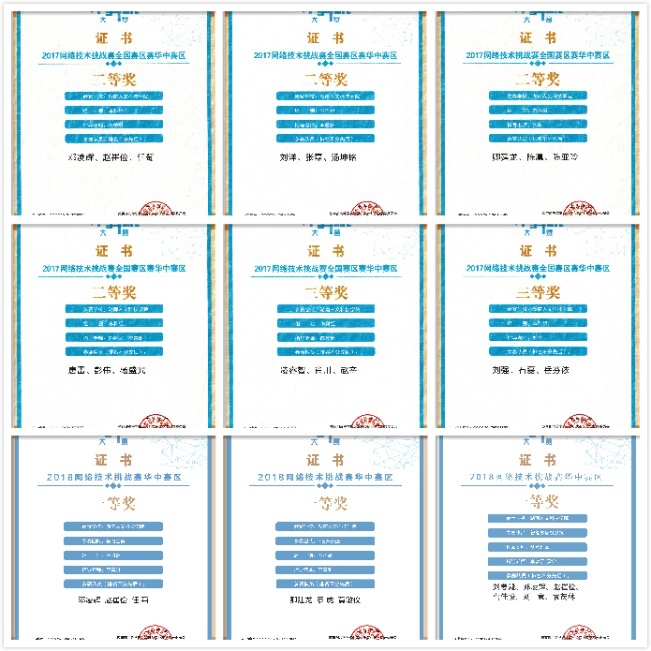 近年来本专业人才培养质量不断提升,工程能力训练效果明显,学生在全国全省的各类竞赛活动中获得优异的成绩,在全国网络工程专业的专业赛事中表现突出,在全国有一定的影响力。近三年本专业学生在学科竞赛中获全国特等奖1项、全国二等奖2项、全国三等奖3项。
