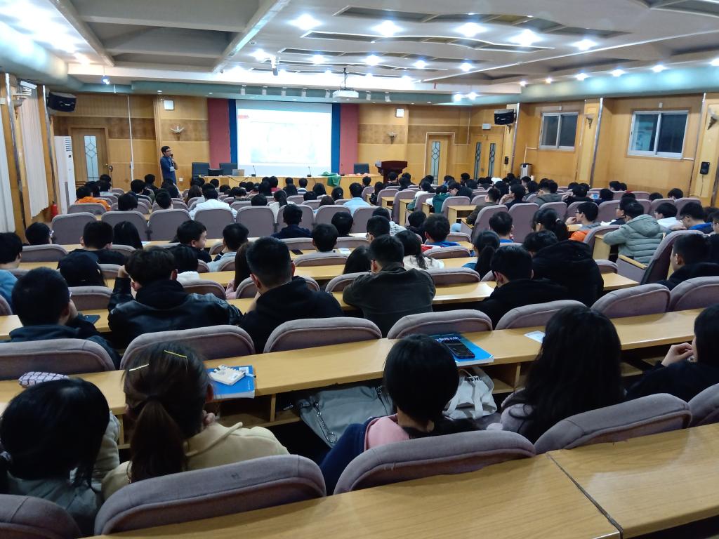 2019年3月12日晚上7:30,由信息学院与国际合作与交流中心承办的“孟加拉国文化”主题讲座在养根楼多媒体报告厅举行,信息学院300多学生参加听讲。讲座由孟加拉国水仙花国际大学软件工程系副主任Kaushik Sarker副教授主讲,信息学院李曾妍副教授主持讲座并负责翻译。Kaushik Sarker副教授介绍了孟加拉国的历史、宗教、婚俗、美食等内容,同学们聚精会神的听,不时发出会心的笑声,一段与同学现场跳舞的互动,将讲座推向高潮。讲座结束后,多名同学用英语向主讲人提问,Sarker副教授热情地一一给予了回答。讲座持续近2小时。
