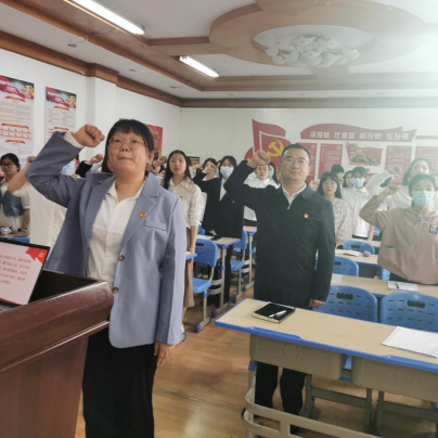 首先,阳立新带领全体毕业生党员重温入党誓词。面对着鲜红的党旗,全体党员高举右臂,庄严宣誓,重温自己对党虔诚的誓言,表达了为党的事业奋斗终身的决心。