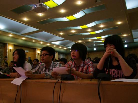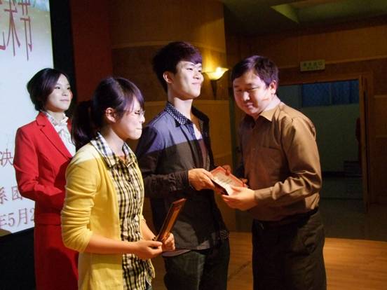 2012年5月26日晚上7:30,由外语系团总支承办的beat365正版唯一官网必一第九届大学生艺术节首届配音大赛“声随影动,感恩经典”决赛于养根楼报告厅举行。校团委副书记魏彦煜、外语系党总支书记胡瑾教授、外语系党总支副书记刘莉、外语系团总支书记龙立平,校团委各部长及各系团副等出席了此次大赛。