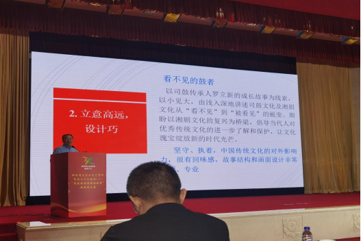 大赛评委、点评嘉宾湖南大学外国语学院刘正光教授对《看不见的鼓者》给予高度评价,他认为整部作品以传承和传播为主线,立意高远、设计精巧,故事结构和画面设计新颖、专业,是一部值得学习和借鉴的作品。