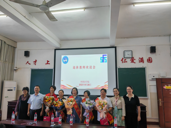 老骥伏枥,心存桃李之梦;桑榆非晚,薪传杏坛之火。荣退仪式是外国语学院师德师风建设的一项有力举措,既体现了学院对退休教师的关爱,也增强了教职工的荣誉感、归属感和幸福感。同时鼓励年轻教师向老教师学习,将个人的发展与学院的愿景融为一体,把人生最美最好的年华奉献给教育,立足本职工作,艰苦奋斗,努力为学院的高质量发展做出自己应有的贡献。