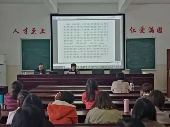 2021年3月25日,广东外语外贸大学韩景泉教授受邀来访我院,并为我院老师带来一场题为“名词性成分句法分布的生成语法研究”的学术讲座,讲座由院长胡瑾主持。