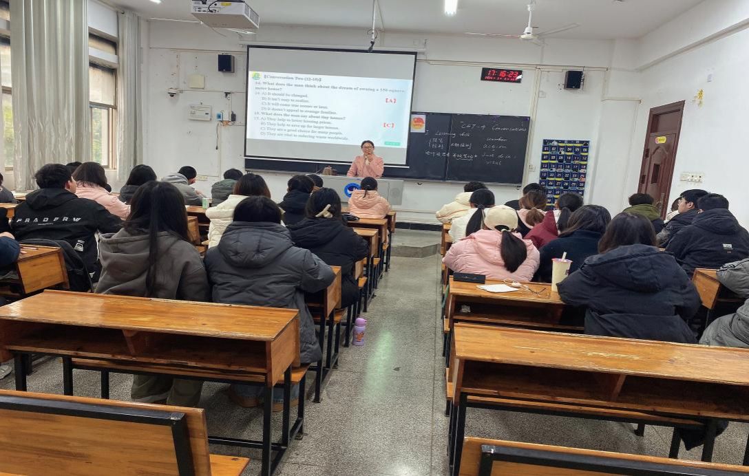 为满足学生个性化的学习需求,助力他们更好地备考英语四六级、研究生入学考试,提升英语综合应用能力,外国语学院公外教研室面向全校学生开设四六级、考研公选课,遴选优秀教师组成教学团队,经过前期充分的准备,本学期顺利开课,协力打造9个英语四级加强班、6个英语六级加强班,1个考研卓越班,共计500余人。团队教师针对四六级、考研写作、听力、阅读、翻译题型开展专题教学,深入剖析历年真题,精准把握考试脉搏。面向学生开展系统性、针对性培训,通过精讲精练,结合技巧运用,帮助学生夯实语言基础、掌握解题技巧,实现能力提升与突破,增强考试信心。