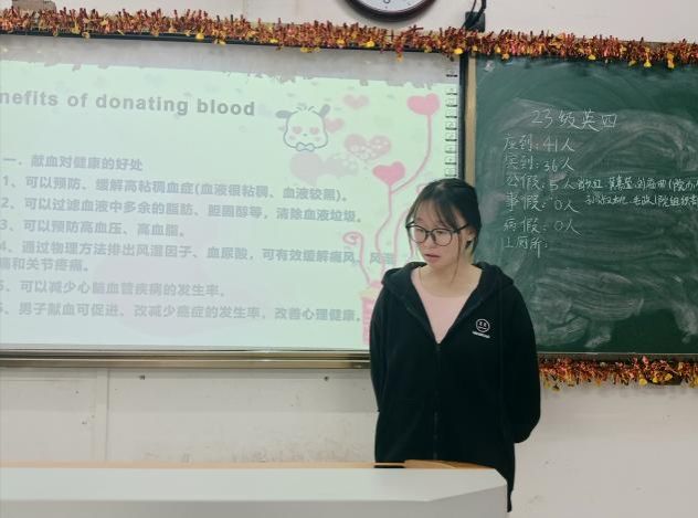 团课伊始,各班主持人引导同学们观看《献血献爱心》视频,加深了同学们对献血相关知识的了解。讨论环节,同学们就“献血的好处”该话题展开了激烈讨论,踊跃举手发言。紧接着,主持人组织同学们观看《血浓情更深》视频,并邀请参加过献血活动的同学上台分享自己献血的感受,以此来激发大家的献血热情,并帮助同学们解决献血的过程中可能会遇到的问题。团课尾声,同学们一起学习了《献血注意事项》文件,确保后续献血活动的稳步进行。
