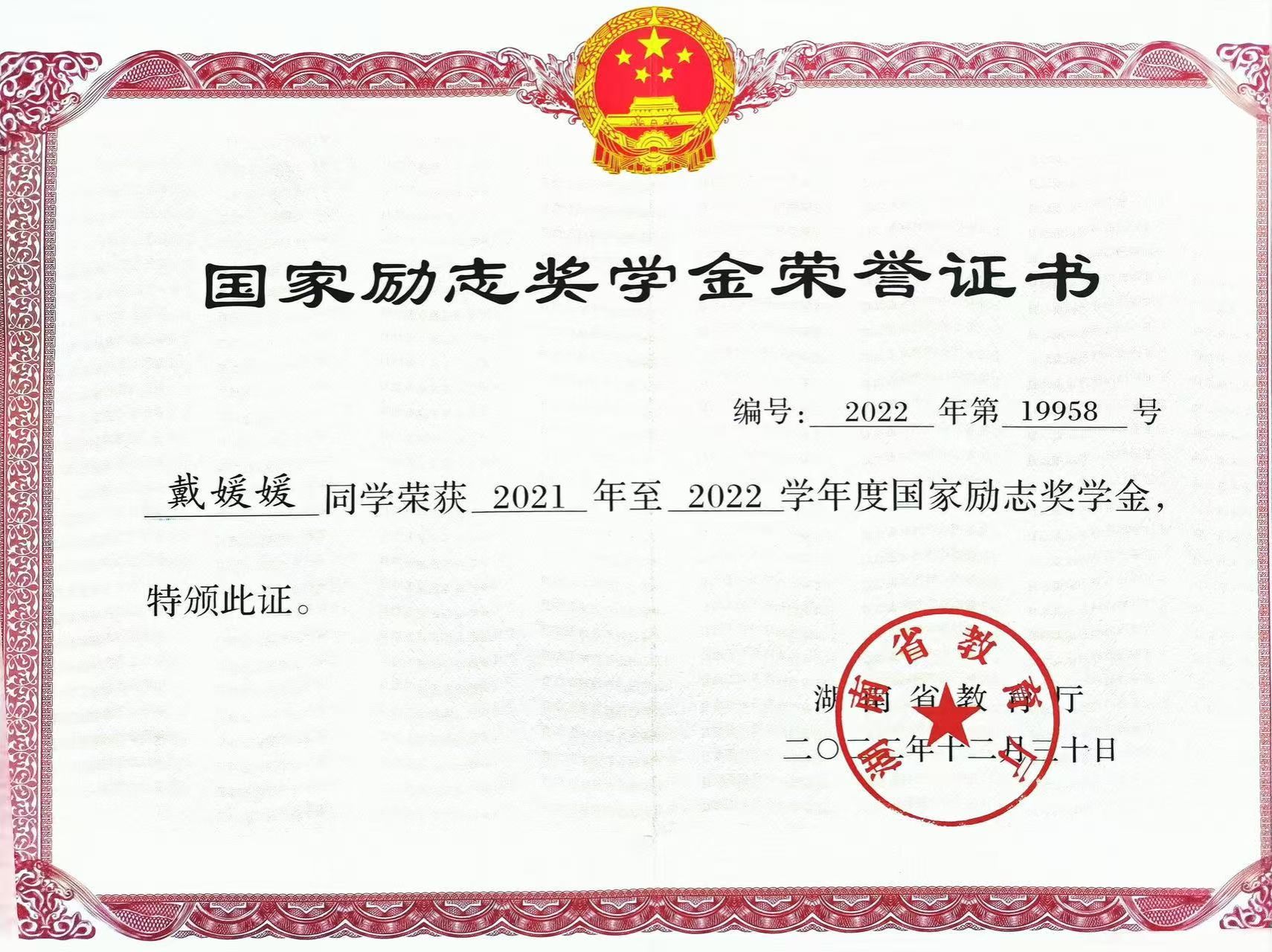2021-2022学年度国家励志奖学金