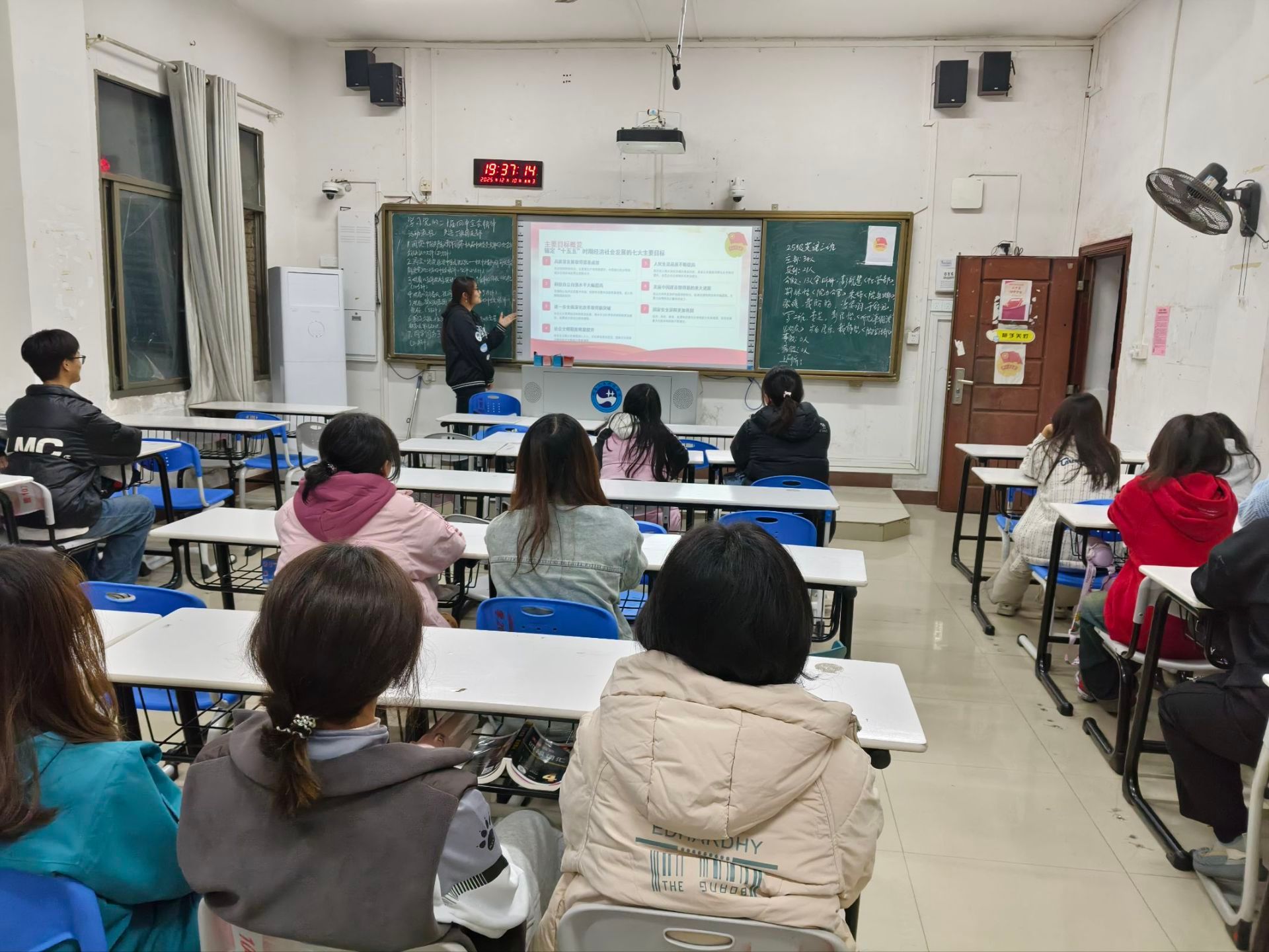 团课中,同学们通过研读《中国共产主义青年团第十九届中央委员会第四次全体会议决议》文件,观看《习习春风 理润苍洱》《擘画新蓝图 学习贯彻党的二十届四中全会精神》专题视频,深入领会全会精神内涵。团课引导学生破除“理论离青年较远”的模糊认知,现场氛围热烈,学生们积极互动参与,展现出新时代青年积极进取的精神风貌。