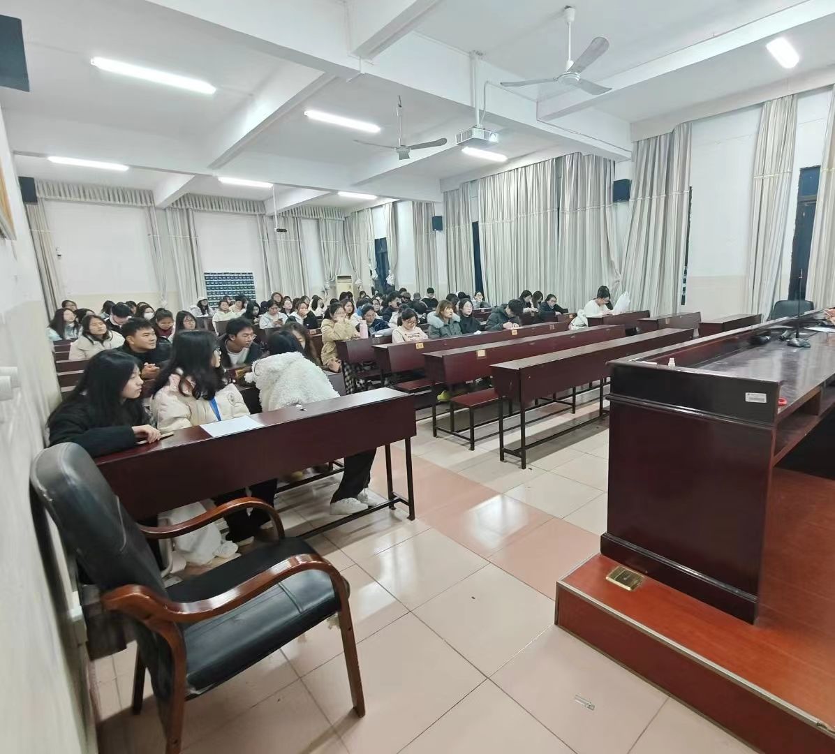 彭杰老师开场便强调了班长和寝室长在班级与宿舍管理中的关键作用,他们是学校与学生间的重要纽带,工作关乎同学们的学习生活和校园稳定。