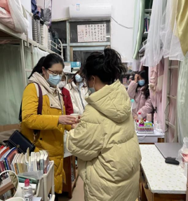 随着我国疫情防控形势日益严峻,2022年3月23日晚,beat365党委副书记李军林带领部分学校中层干部、院领导班子、班主任、辅导员们前往外国语学院学生寝室开展“三联系”活动。