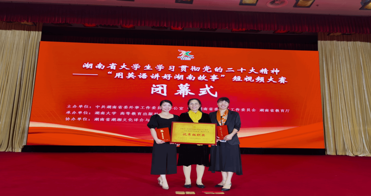 荣获2024年湖南省大学生“用英语讲好湖南故事”短视频大赛特等奖、优秀组织奖