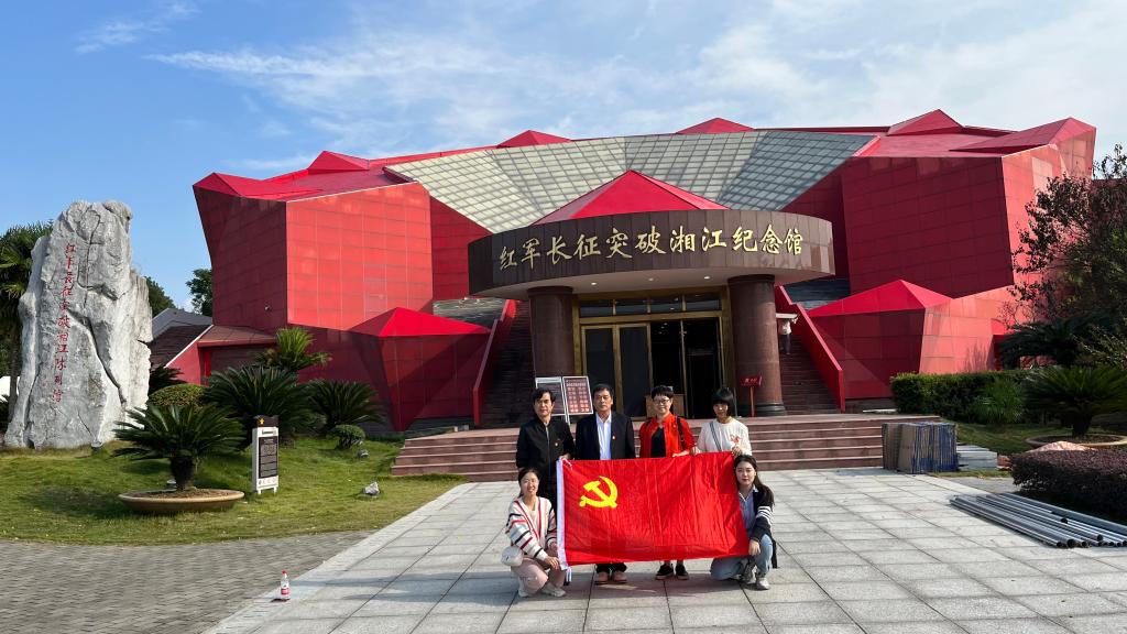 在湘江战役烈士纪念碑和烈士陵园,面对无数为中国革命牺牲的先烈,学报编辑部党员庄严宣誓:接过红军的旗帜,建设好伟大的祖国,为祖国的繁荣富强贡献自己的力量。