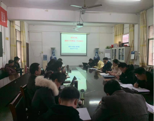 文瑾通报了学院2021年工作总结及2022年工作计划。她指出2021年是团结奋进、硕果累累的一年,希望2022年大家再接再厉,为学院逐梦建本、跨越发展立新功、开新局、谱新篇!