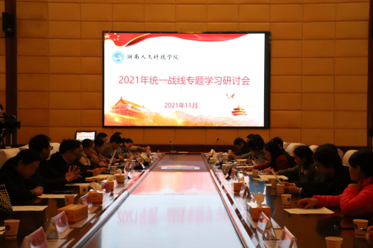11月18日下午,学校统一战线深入学习十九届六中全会精神专题研讨会在图书馆第一会议室召开。各民主党派、侨联、知联会、人大政协等代表人士近40人参加学习研讨,会议由宣传统战部常务副部长谢柳主持,党委副书记李军林出席会议并讲话。