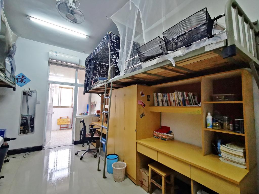 全体党员纷纷拿起扫把、拖把、抹布、地板刷等卫生工具投入到清扫劳动中。有的折叠衣服、整理被子,有的擦拭书桌、门窗、洗漱台,有的刷卫生间,有的扫地拖地,有的整理学生物品……。在近两个小时的紧张劳动中,党员们不怕脏不怕累,把两间寝室打扫得干干净净,拾掇得整整齐齐。