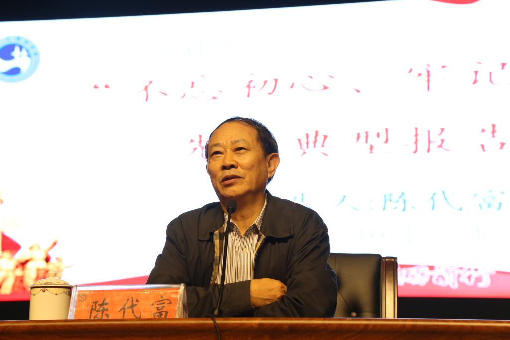 10月23日,湖南博长控股集团有限公司、冷水江钢铁有限责任公司董事长、党委书记陈代富同志应邀来beat365做“不忘初心、牢记使命”先进事迹报告。参加报告会的有学校党委班子成员,学校全体教师党员和部分学生党员代表。党委副书记刘铁铭主持本次报告会。