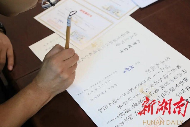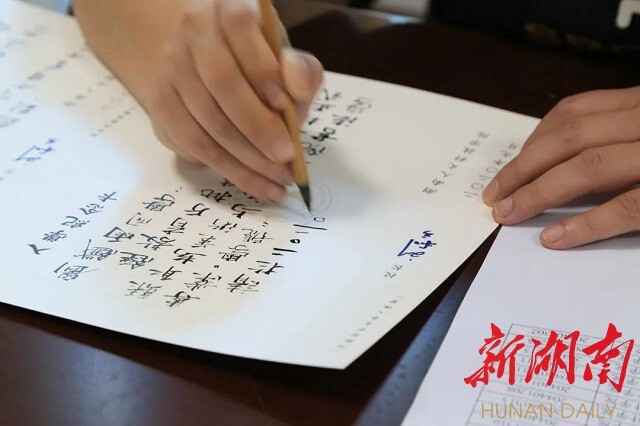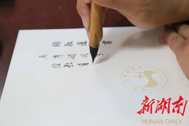 美设学院党总支书记谢光绎:这次是为书法学60名新生手写通知书,下次争取为全校新生手写录取通知书。