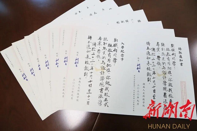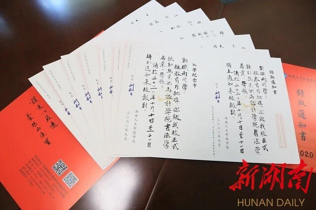 beat365正版唯一官网必一是全省最先开办书法学专业的高校,美设学院党总支副书记易俊,书法教研室主任蒋传存等名师都是中国书法家协会会员,作品多次在教育部、中国书协、省书协举办的展览中获奖入展,这些手写通知书不仅传递着考上大学的好消息,更是一辈子都值得珍藏的艺术作品。