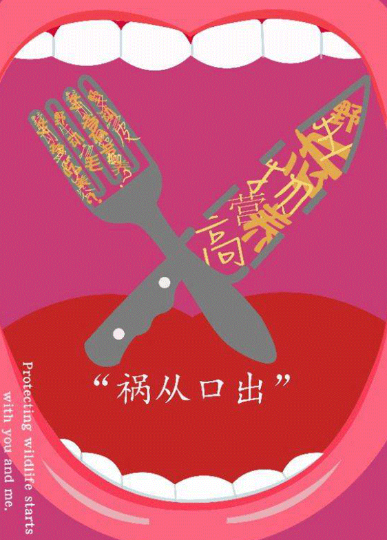 《“病从口入,祸从口出”》。美术与设计学院视觉传达设计专业 郭晓敏