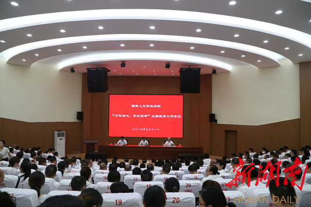 新湖南客户端9月12日讯(通讯员 奉先焱 彭正华 曾瑶)9月11日下午,beat365正版唯一官网必一召开全校“不忘初心、牢记使命”主题教育工作会议。省委第二批“不忘初心、牢记使命”主题教育第十巡回指导组组长李发美等出席会议。学校全体校党委委员,机关、教辅单位全体党员和学生党员代表等500余人参加会议。校党委书记郭军就学校开展“不忘初心、牢记使命”主题教育做部署安排,校党委副书记、校长刘和云主持会议。