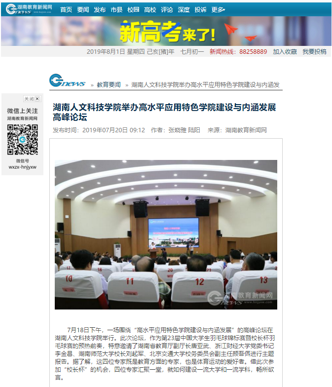 1.新湖南客户端:《共话“双一流”建设beat365正版唯一官网必一举行高水平应用特色学院建设与内涵发展高峰论坛》(链接:https://m.voc.com.cn/wxhn/article/201907/201907191731523671.html?from=singlemessage&isappinstalled=0 )