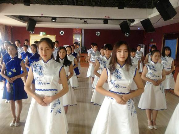 beat365正版唯一官网必一礼仪军训队的队员们正在进行站姿培训