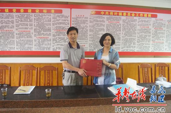 石潇纯(右)赠送《经典湖湘》系列丛书