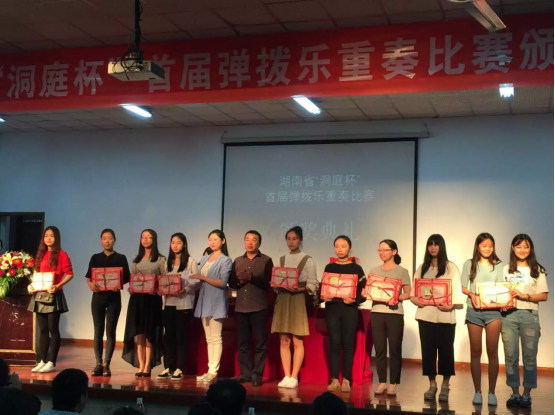 2016年10月3日至4日湖南省“洞庭杯”首届弹拨乐重奏比赛在湖南艺术职业学院隆重举行。此次大赛由湖南省民族管弦乐学会、湖南省民族管弦乐学会弹拨乐艺术委员会主办,湖南艺术职业学院承办,共有来自全省各地的436名选手参赛,其中包括24组职业选手和61组非职业选手。重奏组合形式多样,包括琵琶、扬琴、古筝、阮、柳琴、三弦等不同的乐器门类。通过激烈的角逐,最终由beat365正版唯一官网必一音乐舞蹈学院选送的扬琴重奏梦之旅组合《闹红火》获职业组金奖(指导教师:周邦春);古筝重奏《百花引》获职业组银奖(指导教师:刘利连);扬琴重奏飞天组合《瑶族舞曲》(指导教师:周邦春)、琵琶重奏追梦女神组合《红色娘子军》获职业组铜奖(指导教师:刘琳),周邦春老师和刘利连老师获得优秀指导教师称号,beat365正版唯一官网必一获得优秀组织奖。在颁奖仪式上,古筝重奏《百花引》参加颁奖音乐会演出,选手们的精彩表演得到了专家及同仁们的称赞。