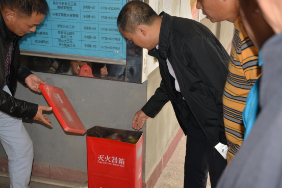 刘铁峰一行先来到播馨楼、百全楼等教学楼对学院假期值班安排情况、学生安全教育情况、安全隐患排查情况等进行了询问检查。再来到视频监控中心与消防控制室,查看了各项设施设备能否正常平稳运行,叮嘱工作人员一定要坚守岗位、尽职尽责的完成工作;随后又去往学生食堂、超市对环境卫生、食品安全进行了详细的检查,要求工作人员做好后勤服务,确保食品安全。最后来到材料与环境工程学院对各个实验室进行了全面的检查,并与正在做实验的师生进行了亲切的交流。